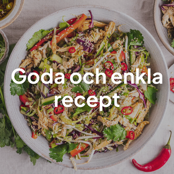 Vi ger dig inspirerande recept och måltidstips, noga framtagna för att stötta dina hälsomål. Våra recept utgår från naturlig mat med en lägre andel kolhydrater, men som ändå är familjevänliga och enkla att laga.